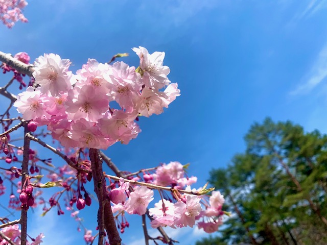 敷地内にある、しだれ桜がきれいに咲いていて春を感じさせてくれます✨